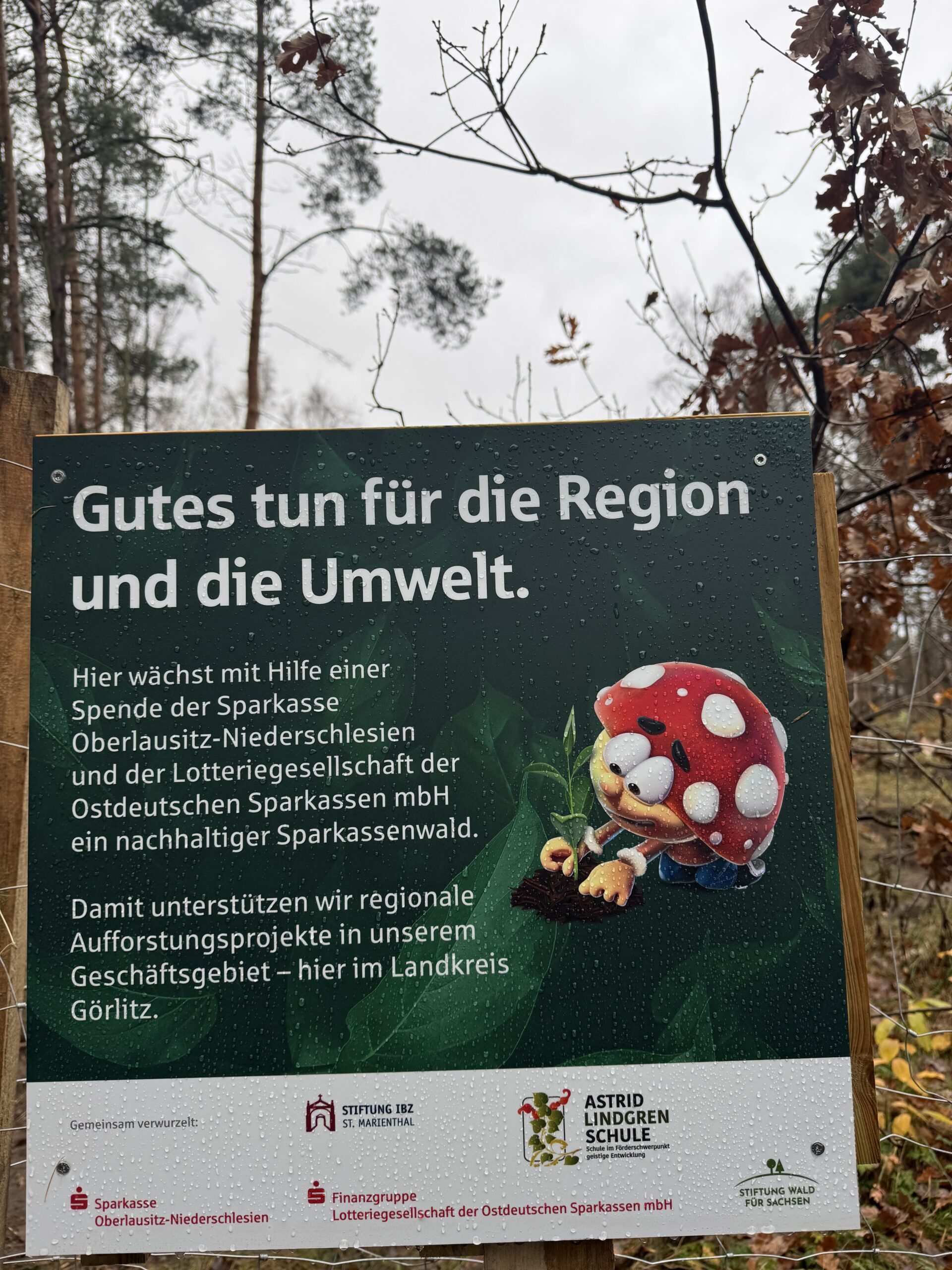 Auf einer ersten Fläche wurden 550 junge Bäume gepflanzt. Rund 30 Schülerinnen und Schüler der O2 sowie eine Klasse des Berufsschulzentrums Weißwasser packten mit an. Unterstützt wurde die Aktion von zahlreichen Partnern aus Gemeinde, Sparkasse, Stiftungen und Behörden.