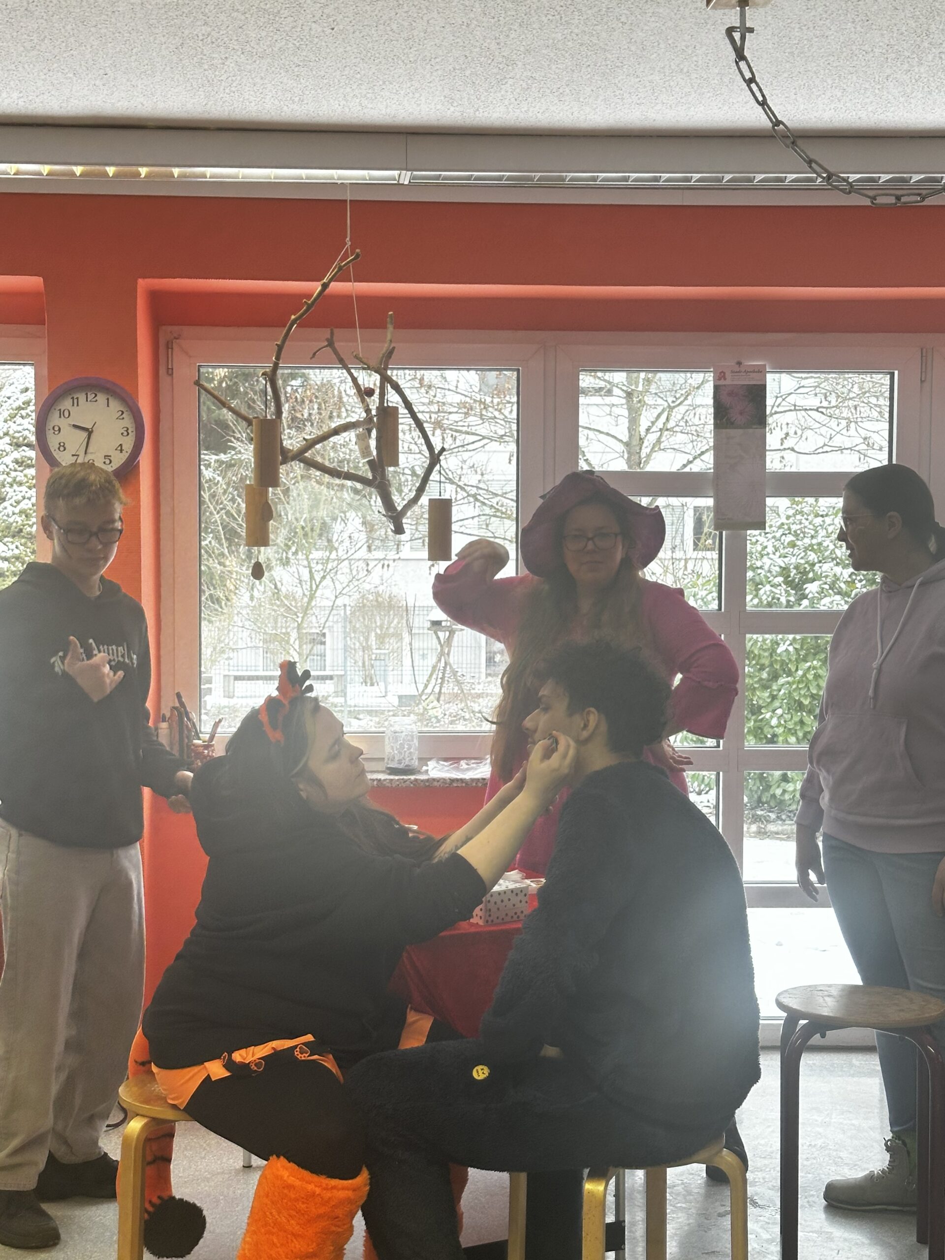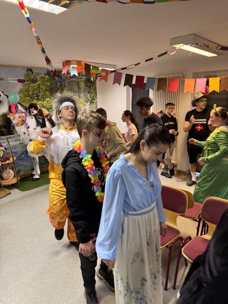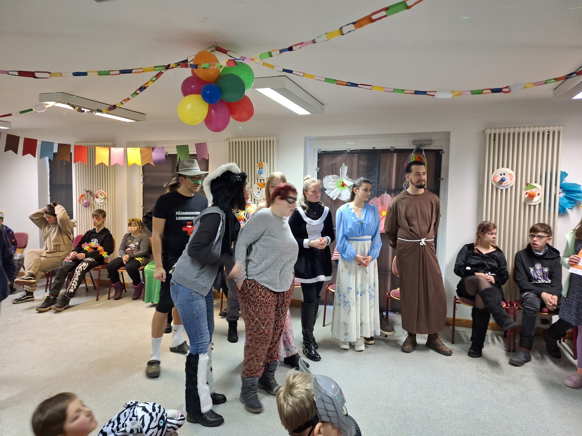Außerdem wurden verschiedene Spiele angeboten, bei denen alle mitmachen konnten. Die Faschingsdisko war ein großes Erlebnis und hat allen viel Spaß gemacht.